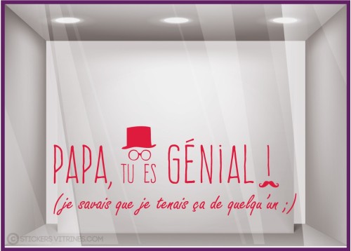 La fête des Pères approche à grands pas ! Il est temps d’apporter une touche d’humour à votre vitrine grâce à notre vitrophanie Papa tu es génial. Ce sticker humoristique pour devanture de magasin de mode et opticien est idéal pour célébrer les papas. Boutique de prêt-à-porter masculin et de sport, annoncez cet événement de manière ironique.