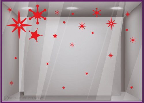 Ce kit est composé de 3 stickers de grandes étoiles avec un design unique et élégant qui illustrent à merveille la féérie de Noël. En plus de ces 3 grands adhésifs de vitrine, le kit contient 20 plus petits adhésifs d’étoiles à disposer comme vous le souhaitez sur votre façade de commerce.